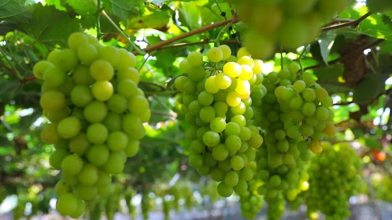 “我就是这附近的,听说这里的阳光玫瑰熟了,很好吃,今天来采摘点,拿回去和家人分享,阳光玫瑰真的是很甜很好吃。”游客李振芹说道。