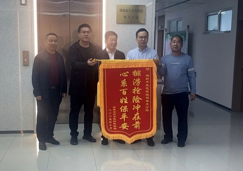 中华文化报官网讯(于翠凤 丁 洁):连绵阴雨,挡不住秋收一线的暖心护航。近日,固堤李家沿村村民将印有“排涝抢险冲在前,心系百姓保平安”的锦旗送到潍坊市生态环境局寒亭分局工作人员手中,感谢寒亭分局在秋收排涝抢险中的暖心服务。