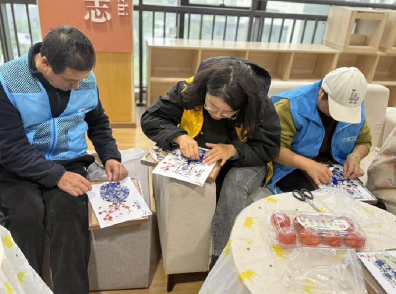活动现场,快递小哥、外卖骑手、网约车司机等新就业群体暂时放下忙碌的工作,在陶瓷碎片与胶水的创意拼贴手工体验中,感受传统非遗青花瓷的独特魅力。劳动者们聚焦“柿子画创作”,带着“事事如意”的美好寄托,一幅幅色彩与纹理交融的柿子画渐次成型。