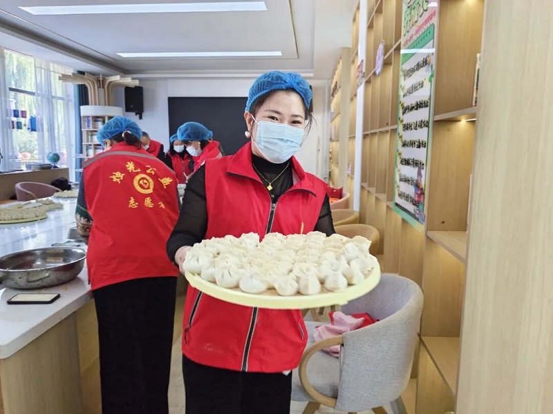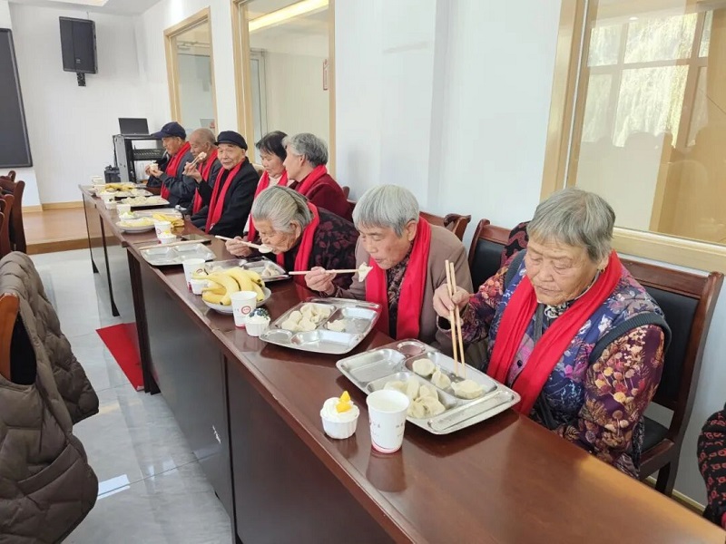 当热气腾腾的饺子出锅时,全场气氛达到高潮。志愿者们细心为每位老人端上饺子,搭配几样小菜和水果。81岁的刘大爷尝了一口连连称赞:“这饺子馅大皮薄,味道真好!”老人们围坐在一起,边吃边聊,脸上洋溢着幸福的笑容。小小的饺子,不仅暖了胃,更暖了心,成为连接邻里亲情最温暖的纽带。