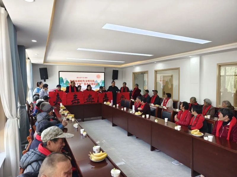 随后,一场翰墨传情的“赠寿字”仪式将现场点缀得古韵盎然。书画志愿者展纸挥毫,将吉祥祝福凝于笔端,一幅幅雄浑有力的“寿”字墨宝顷刻挥就。“这字写得真精神,我得带回家好好珍藏!”手捧墨宝的赵奶奶笑意盈盈,爱不释手。笔墨之间,不仅传递着祝福,更凝聚着对传统节俗的守护与传承。