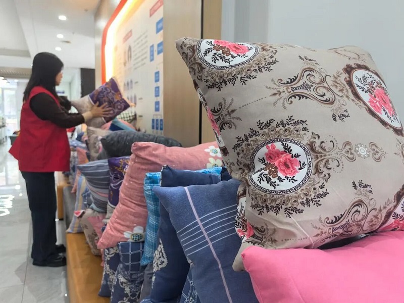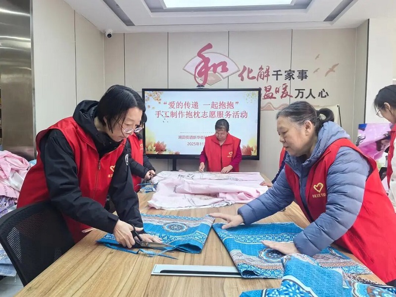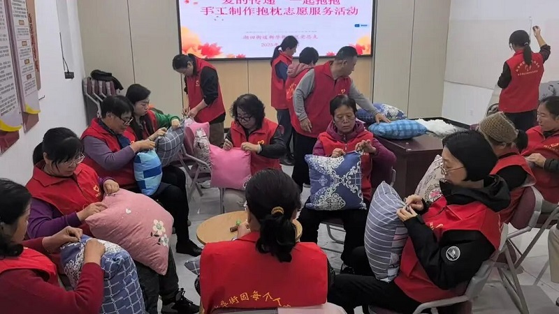 中华文化报官网讯(李小亮 马芳秀):“王阿姨,您看这个花纹朝这边会不会更好看?”“填充绒要塞得均匀些,老人们坐上去才舒服。”11月6日上午9点,张店区湖田街道新华街社区居民活动室内暖意融融,二十余名志愿者围坐在一起,手指翻飞间,五颜六色的布匹逐渐变成了饱满柔软的抱枕,这些承载着心意的“冬日暖心礼”,将陆续送到辖区孤寡老人、独居老人和户外工作者手中。