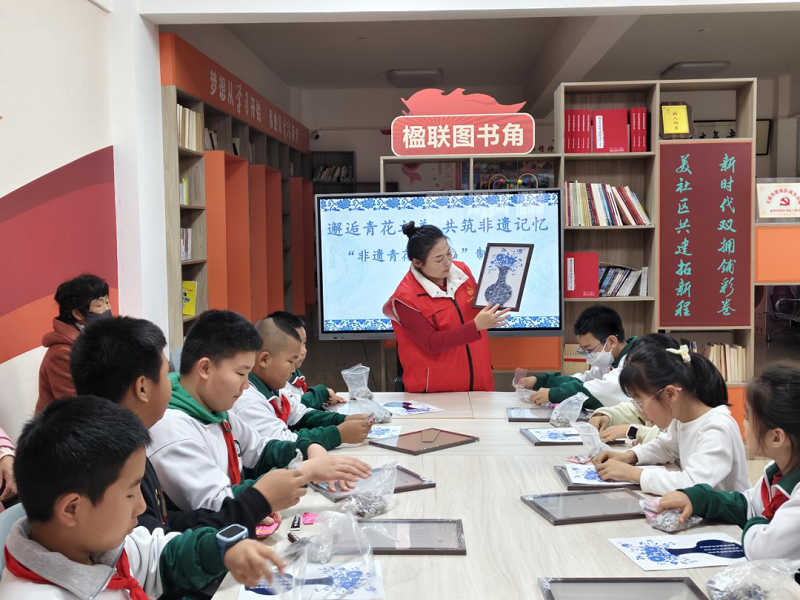 中华文化报官网讯(李小亮 马芳秀):为弘扬中华优秀传统文化,将中华传统青花瓷艺术与现代美育相结合,丰富社区青少年的课余生活,益华里社区开展“邂逅青花之美 共筑非遗记忆”非遗青花瓷贴画制作活动,让青少年在指尖粘贴间触摸千年瓷文化的温度。