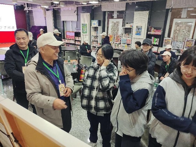 研学之余,画师们化身“乡土文化志愿者”,在展厅里搭起了“宁夏农民画文化驿站”。刘学萍带着《社早市》,用朴实的方言给观众讲乡村的新变化;王存福满怀热情讲《砌新窑》的故事,老画师沈克礼深有感触的向围观的爱好者叙述版画从传统到新样式的转换。面对自己的作品张国银说,自己的作品反映的就是自己的精气神。一天下来活动志愿团接待观者数百人,与爱好者互动上百次。一位来自贵州的农民画家同行深情的说:宁夏农民画家的画有特点,反映的自已的生活,很耐人寻味。这次还通过进名校(清华附中)、进名村(北京房山黄村)学习交流,团员们受益匪浅。