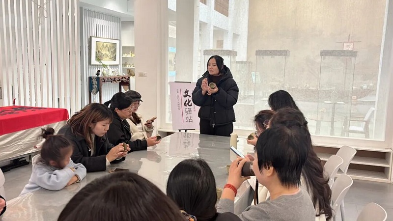 活动伊始,讲解老师结合图文资料,为参与者讲解了瓷上彩绘的历史渊源、技艺特点以及温州瓷上彩绘的独特风格。“瓷上彩绘讲究‘以形传神、以色润心’,既注重传统图案的传承,又融入了山水人文元素。” 她一边讲解,一边展示了瓯忆团队精心制作的瓷上彩绘作品。