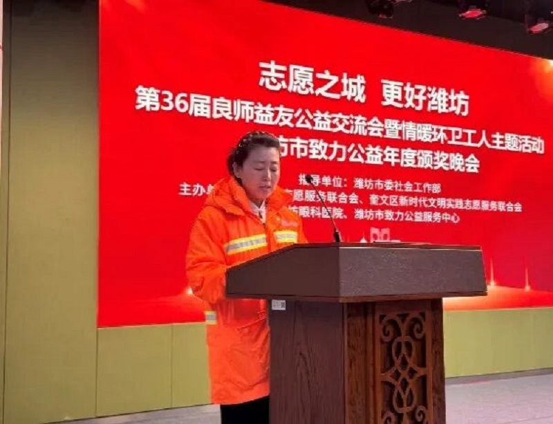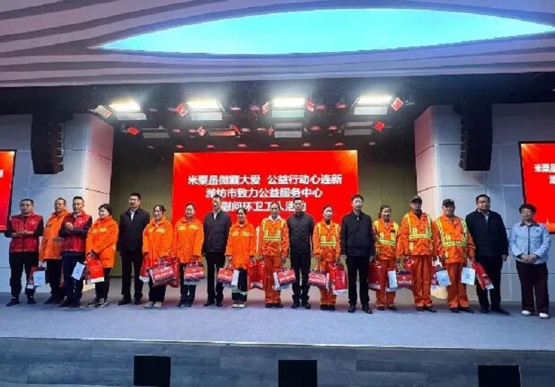 中华文化报官网讯(刘金山 刘雪岭): 粒米虽小,情意深厚。一年岁晚,仲冬时节,由潍坊市致力公益服务中心与潍坊市志愿服务联合会联合发起的“米粟虽微藏大爱·公益行动心连新”——潍坊市致力公益服务中心慰问环卫工人活动在眼科医院举行。多年来,潍坊市致力公益服务中心持续开展公益服务,坚持每年为环卫工人举办慰问活动,赠送各种物资,已成为一项传递城市温度的爱心传统。