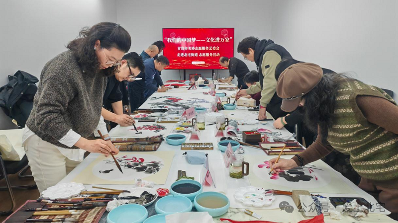 中华文化报官网讯(卜祥爱 秦京升):12月8日,北宅街道联合青岛市美术家协会志愿服务艺术委员会,在三树新村启动“文化进社区”活动。艺术家们以书写春联、绘制福字和国画创作为载体,将传统文化与艺术温暖送至村民家门口,提前营造出喜迎新年的浓厚氛围。