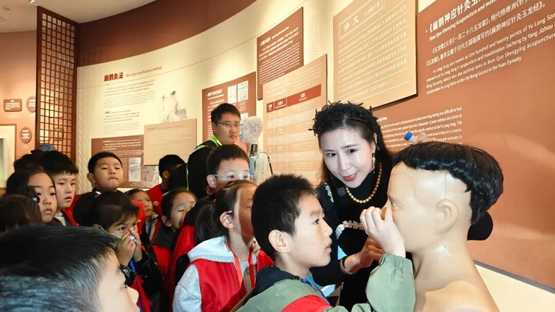 “他的眼睛好像在看我!”小记者徐澜兮指着一尊近代名医蜡像,拉着同伴分享。大家围着蜡像缓缓走、慢慢看、细细听,采访本上记着“扁鹊:发明四诊法”“华佗:擅长外科手术”这样的笔记,生怕错过任何一个知识点。