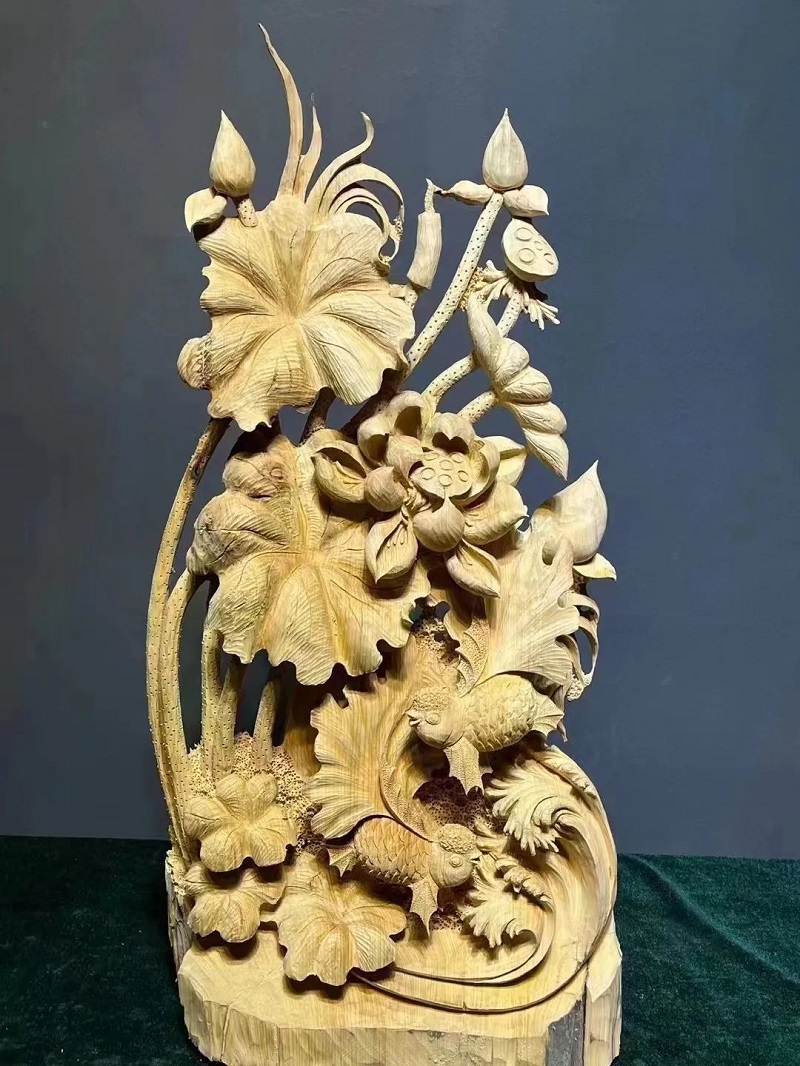 深雕类主要做收藏类的高端作品,比如以地方文化为内容的写实类,高端屏风等,大多用高端木材为主。作品以收藏、馆藏为主。