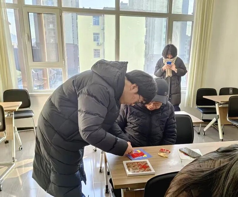 创作过程中,邻里间的温情在指尖流转。大家主动交流拼豆技巧,分享创意思路,遇到摆放难题时互帮互助,陌生的距离感悄然消散。志愿者穿梭现场,及时提供协助并为大家固定成品。当零散的豆粒在巧手下蜕变为人见人爱的腊八主题拼豆画,成就感与幸福感洋溢在每个人的脸上,活动室里满是欢声笑语与赞美之声。