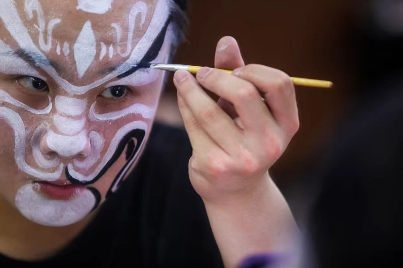 清晨的徽剧院,油彩味混着汗水的咸涩。女生的腰肢在把杆上绷成一张弓,男生的脚尖在毛毯上游走——这是徽剧“四功五法”的修行,也是与时间较劲的仪式。“学戏如熬汤,火候不到,戏魂不醒”,这是老艺人口口相传的“规矩”,亦是这帮青年演员前行之路上的“灯塔”。这群年轻人正在用稚嫩的声音复活消逝的曲牌,用青春的躯体感应舞台之上前辈们的心跳。犹记得多年以前,这群青年演员仍是孩子的时候,他们走入课堂,踮起脚尖。他们分不清西皮、二黄,只在心中不断默念前辈和老师们的话语“戏比天大”。印象中,油彩糊了满脸,靠旗压弯腰肢——这些“00后”的戏苗,也在风雨中逐渐崭露头角。