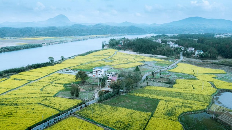 三月下旬,江西省九江市武宁的油菜花迎来了最佳观赏期。走进罗坪镇、澧溪镇等地的乡村田野,金灿灿的花海铺天盖地,与远处的青山、近处的白墙黛瓦相映成趣,构成一幅生动的春日田园图景。微风拂过,花浪翻滚,空气中弥漫着淡淡的花香,引得游人纷至沓来。“每年春天都要来武宁看油菜花,这里的风景太美了,拍照特别出片!”从南昌专程赶来的游客张女士一边举起手机拍照,一边兴奋地说。在花田旁的观景台上,摄影爱好者们架起“长枪短炮”,定格这春日里最美的瞬间。孩子们在花田间的小路上奔跑嬉戏,欢声笑语回荡在田野上空。