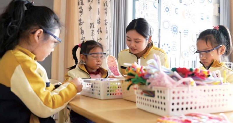 近年来,太白湖新区始终将婴幼儿照护服务作为保障和改善民生的重要抓手,坚持政策引领与多元供给双轮驱动,全力绘制全区托育服务高质量发展的宏伟蓝图。在政策顶层设计上,新区出台《太白湖新区促进3岁以下婴幼儿照护服务能力提升三年工作实施方案》,明确发展目标、重点任务与责任分工,为行业规范化发展架起“四梁八柱”,提供坚实政策指引与制度保障;新区创新探索“政府引导、国企协同、社会参与”的托育发展新路径,通过“两条腿走路”盘活存量资源、做优增量供给,实现托育资源快速扩容与质效双升。截至目前,全区已拥有21家托育机构且全部完成备案,实现机构备案率全覆盖,让无数家庭卸下育儿重担,让职场父母舒展眉头。望月湾托幼一体园的“一枝独秀”,正是这一发展蓝图下的生动缩影。走进园区,初印象便是“一步一景”的惊喜,积木搭建的各式机器人组成童趣盎然的“科技角”,以“百年探索、奋斗、进取”为主题的“文化角”,让孩子们在动手互动中轻松认知56个民族、省市自治区等知识。行至二楼,一间别开生面的“棋牌室”更打破了学前教育的传统认知,这里没有枯燥的拼音算术灌输,取而代之的是一张张充满童趣的棋桌,成为孩子们“玩中学、学中悟”的成长桥梁。大班孩子们围坐对弈飞行棋,骰子落盘的清脆声响中,他们在点数计算里完成数学启蒙。“这不仅是一场游戏,更是一次关于规则、逻辑与社会交往的预演,让幼小衔接成为充满教育温度的‘棋’乐之旅。”望月湾寄宿制托幼一体园执行园长鲁亚宁笑着介绍。