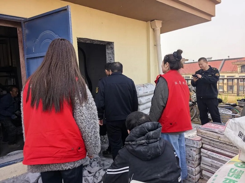发现问题后,社区第一时间启动“吹哨”程序,向街道执法中队上报违建相关情况,详细说明违建点位、规模及安全隐患,同时联合盛德物业工作人员现场取证、制止违规施工,并下达违建整改通知书,限期整改。