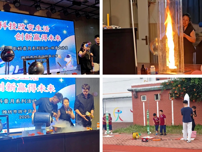 本次活动经过了精心策划和组织,采用互动和演示的形式开展。“跳舞的火焰”“面粉爆炸实验”“液氮实验”“回旋的火苗”“火箭发射”,深奥的科学知识以生动有趣的形式展示在学生面前,激发起学生浓厚的探究兴趣。