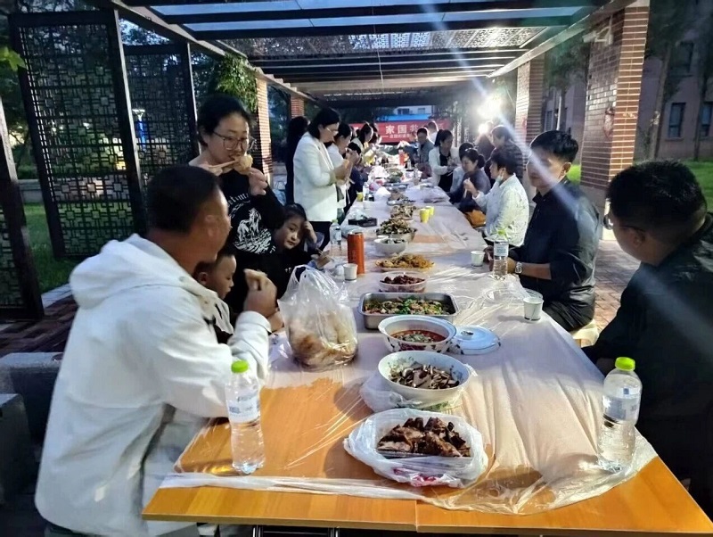 社区活动室里多领域党员代表齐聚庆双节,歌舞、诗朗诵轮番上演,工作人员与居民围坐一起包饺子、品月饼,美食与节目相伴,满是团圆温馨。