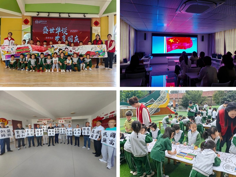 安泰社区居民共同观看《建国大业》,从共商建国大业的热烈场景,到五星红旗冉冉升起的震撼画面,一步步带领大家重温艰辛与荣光,让红色基因在光影流转中悄然传承。文水社区党员活动室里,老党员们重温入党誓词、齐唱《歌唱祖国》,字字铿锵诉初心;书法协会老师现场挥毫,将“国泰民安”等美好寓意的作品赠予老党员;名郡博苑幼儿园100余名孩子围坐一起共绘国庆长卷,斑斓色彩里满是对祖国的稚嫩祝福。