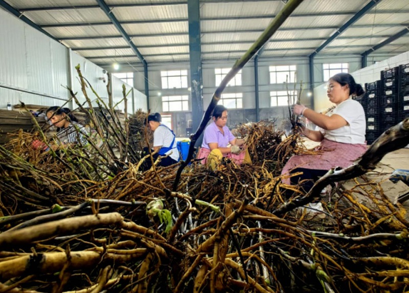 中华文化报官网讯(刘金山 刘雪岭):连日来,在山东省菏泽市牡丹区黄堽镇的菏泽牡丹出口示范区,工作人员忙着对即将“出海”的牡丹种苗进行加工作业。工作人员手持高压水枪,仔细冲洗牡丹种苗根部的泥土;旁边,多名工人围坐在一起,用剪刀精准修剪种苗枝叶;一侧,几名工人则将加工完毕的牡丹种苗小心装入包装箱。